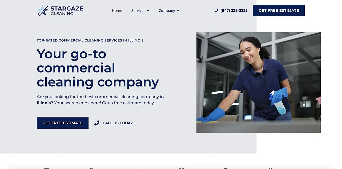 Stargaze Cleaning is a strong example of how clean branding, intentional imagery, and clear site structure work together to create a high-converting commercial service website.