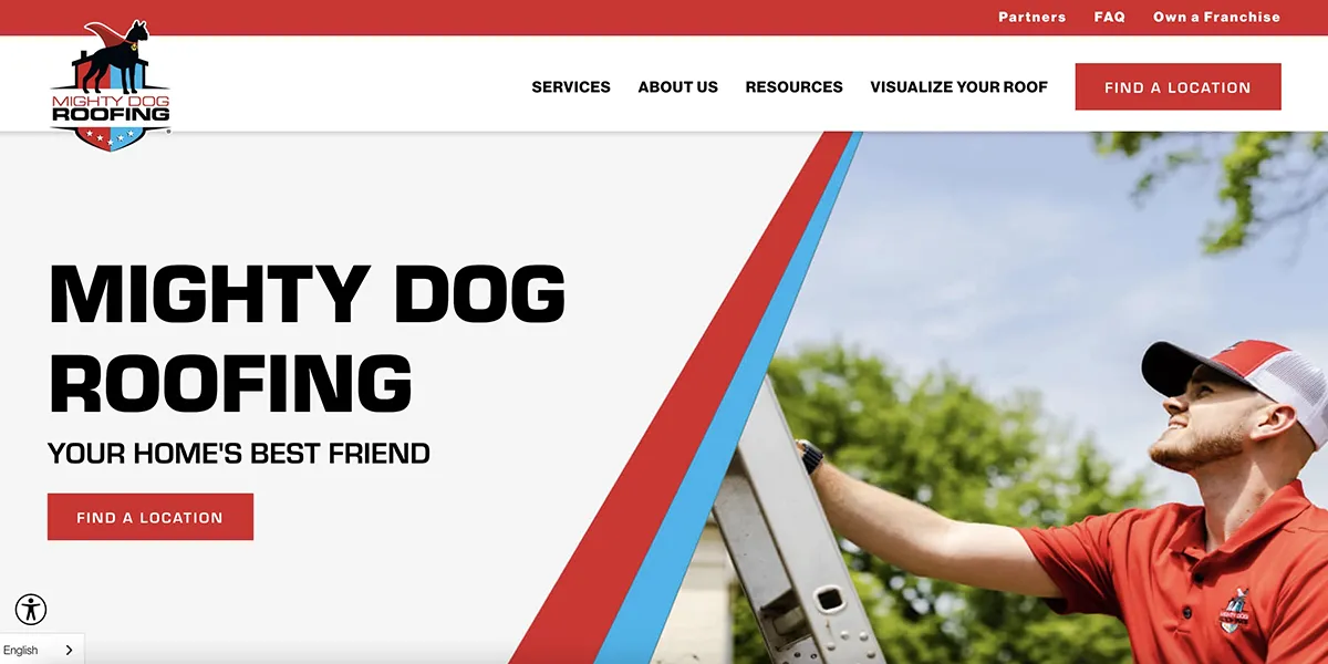 Mighty Dog Roofing stands out by combining strong branding with interactive tools that enhance engagement.