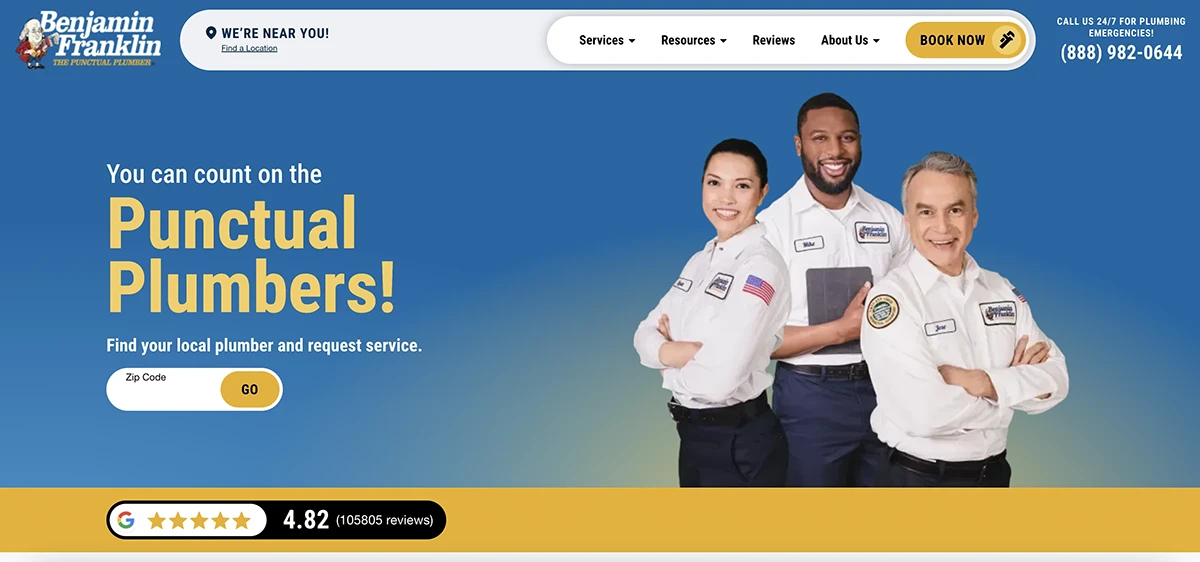 Benjamin Franklin Plumbing is a great example of how structure, trust, and urgency drive conversions.