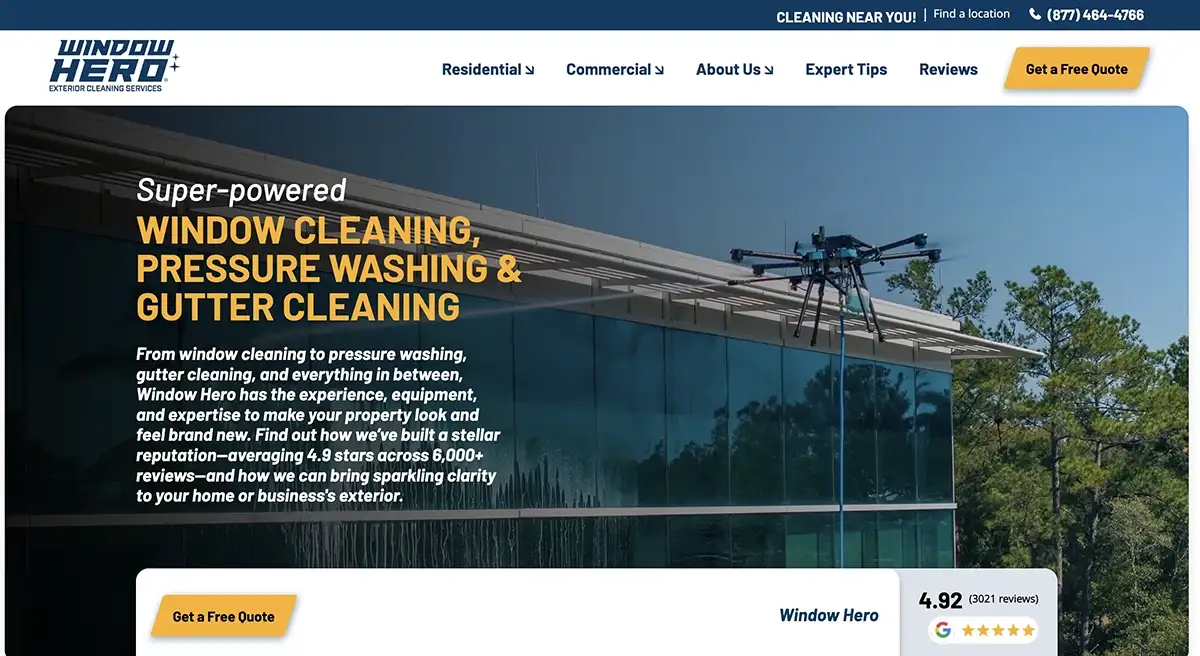 Window Hero excels at visual clarity and logical service grouping, which is especially effective for exterior and cleaning services.